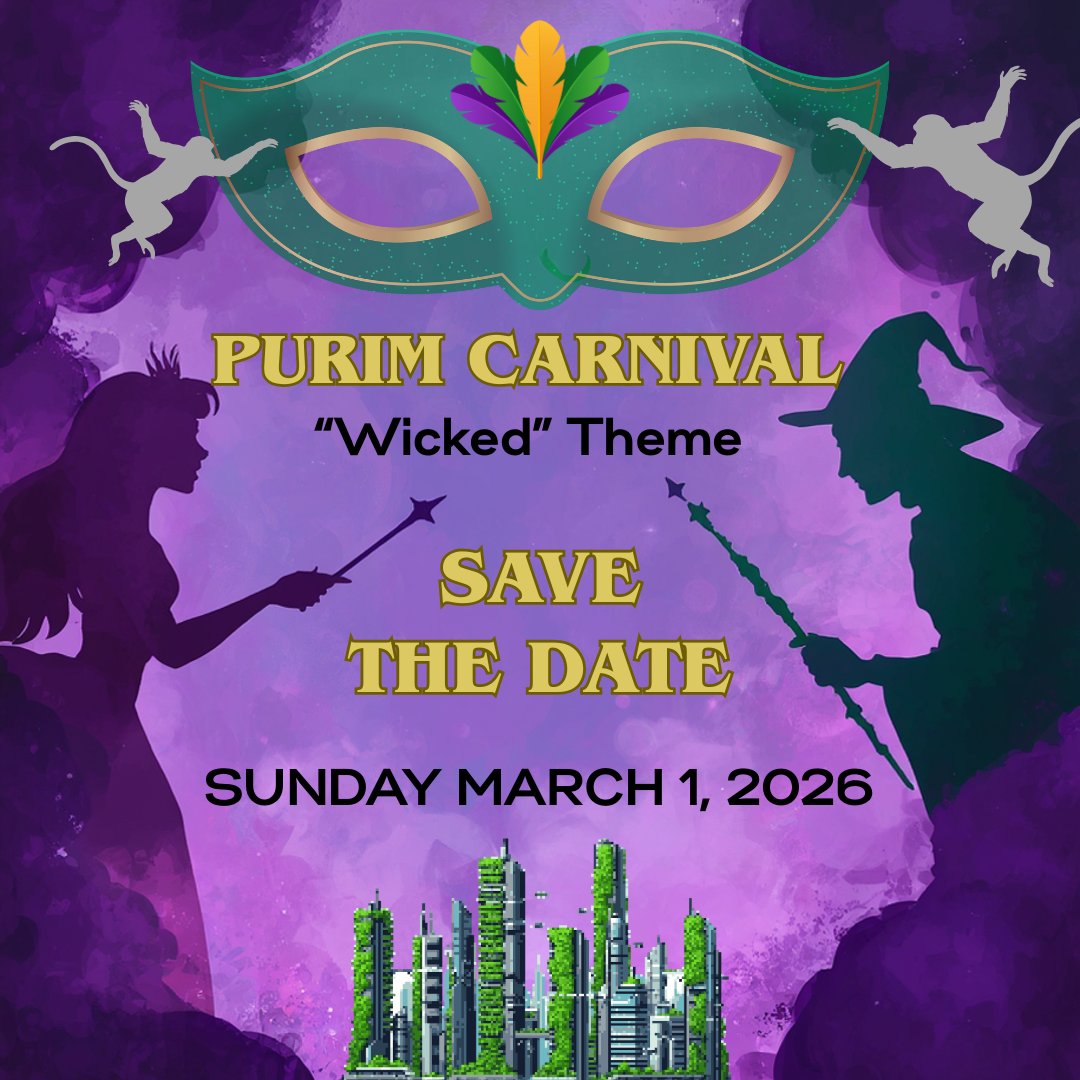 Save the Date, March 1, for our fabulous “Wicked” Themed Purim Carnival. Details to Follow!